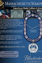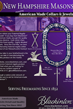Our new one page New Hampshire flyer features a Masonic Blue Lodge Chain Collar and a handfull of our officers’ jewels. Blackinton has been manufacturing American-Made Fraternal Regalia jewels for over a century.