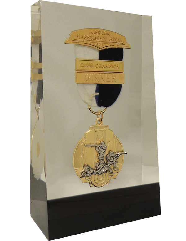 Lucite is sometimes known as “acrylic embedment’s”. It is an acrylic mixture that is hand poured into a mold and allowed to partially cure. Then an object; i.e., a badge, is placed into the mixture by hand. Heat and pressure are applied in an atmospheric oven for 24 hours to eliminate as many air bubbles and imperfections as possible and to complete the curing process.