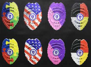FlexBadge Display Mat Showing Metallic and Satin Finishes